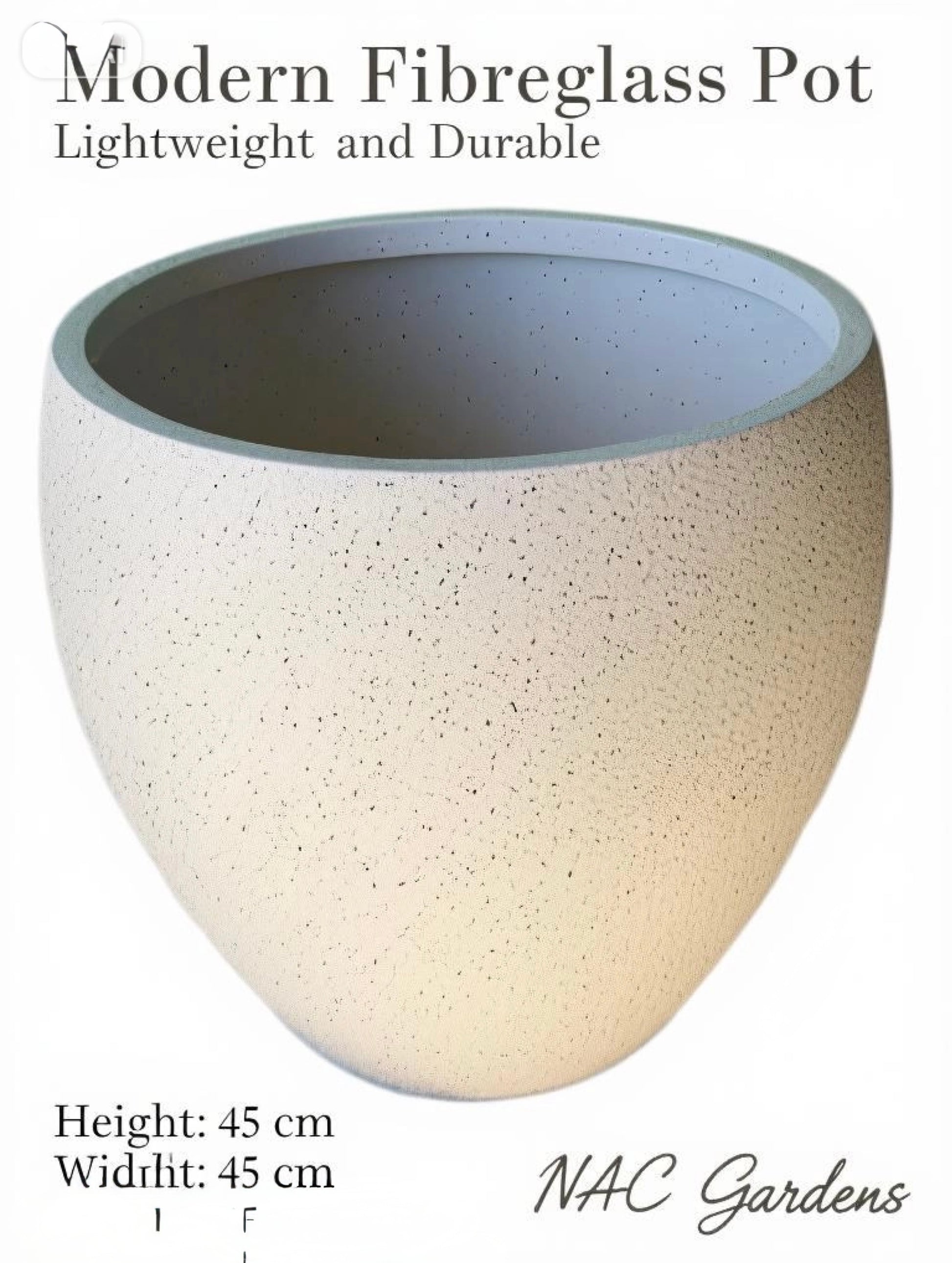 45cm Fibreglass Pot Planter –Speckled- Lightweight & Durable Modern Outdoor / Indoor Pot