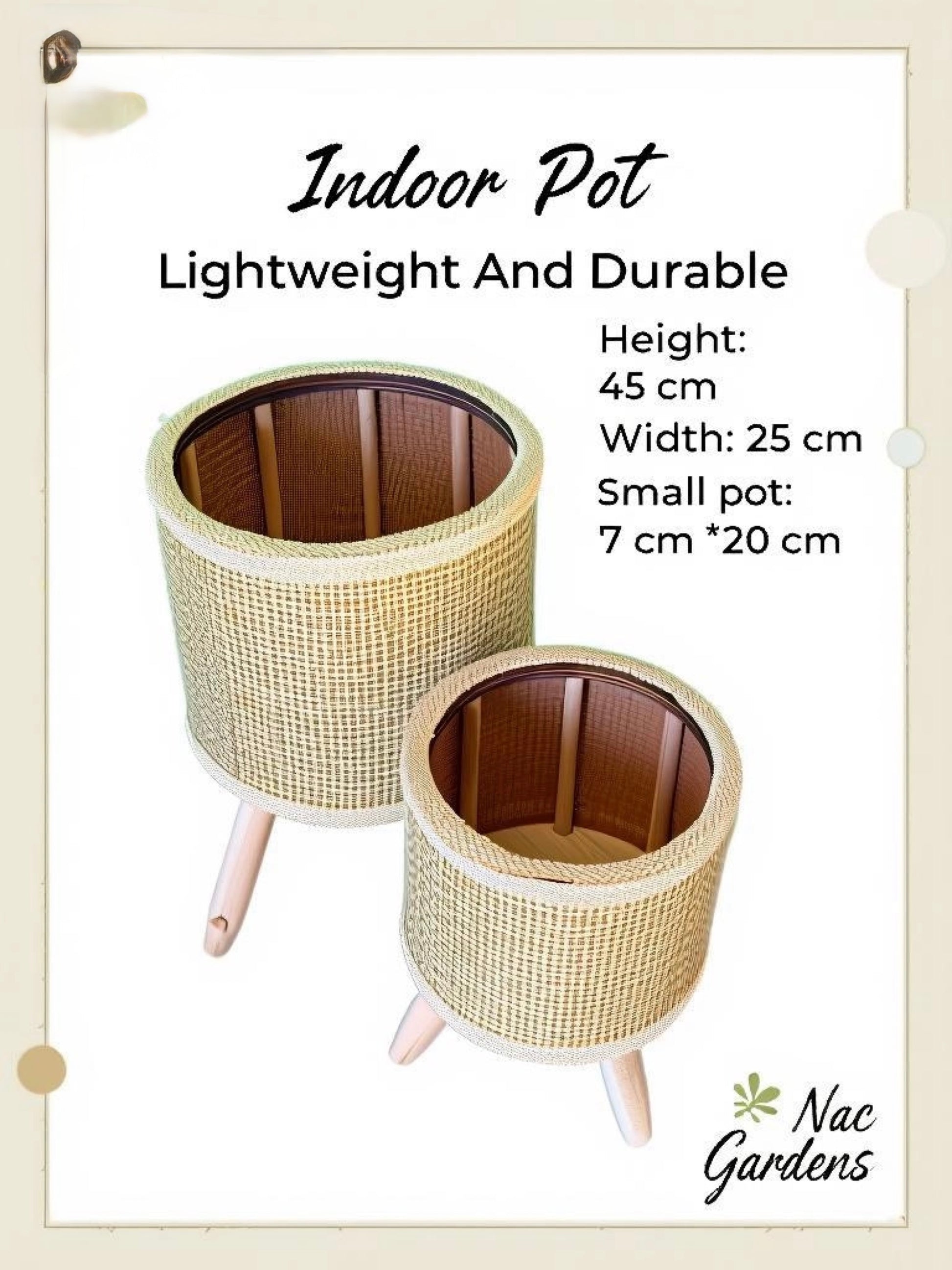 Featuring a woven-look outer finish with a sturdy inner pot, this planter is lightweight, durable, and easy to style. Raised on elegant legs, it lifts your plants off the floor, making it perfect for indoor décor, living rooms, bedrooms, offices, and covered outdoor areas.
